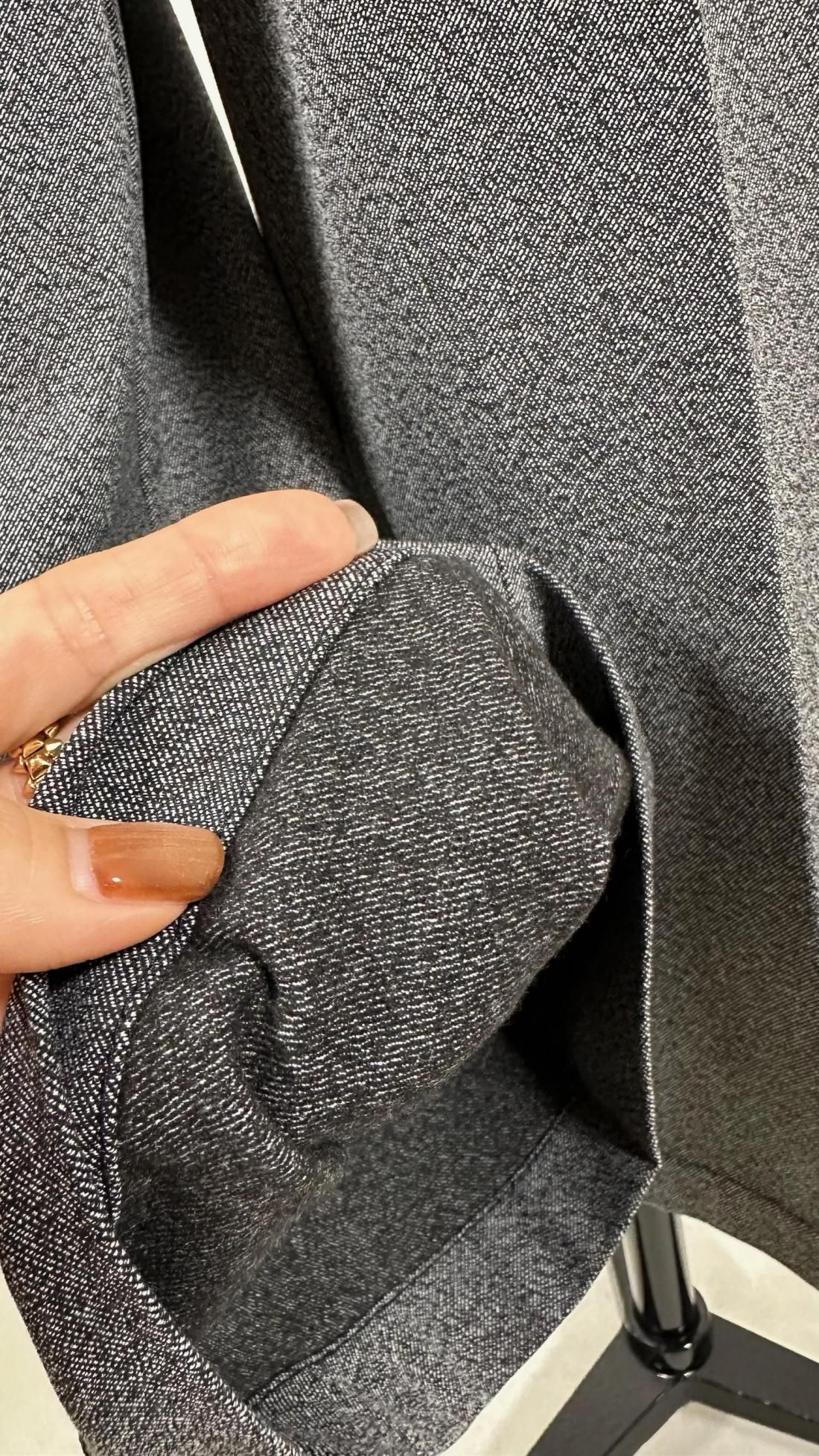 前ポケット口には、さりげなく光を添えるサテンの配色をプラス。控えめなディテールながらも、全体を上品に引き締め、華やかさを演出します。